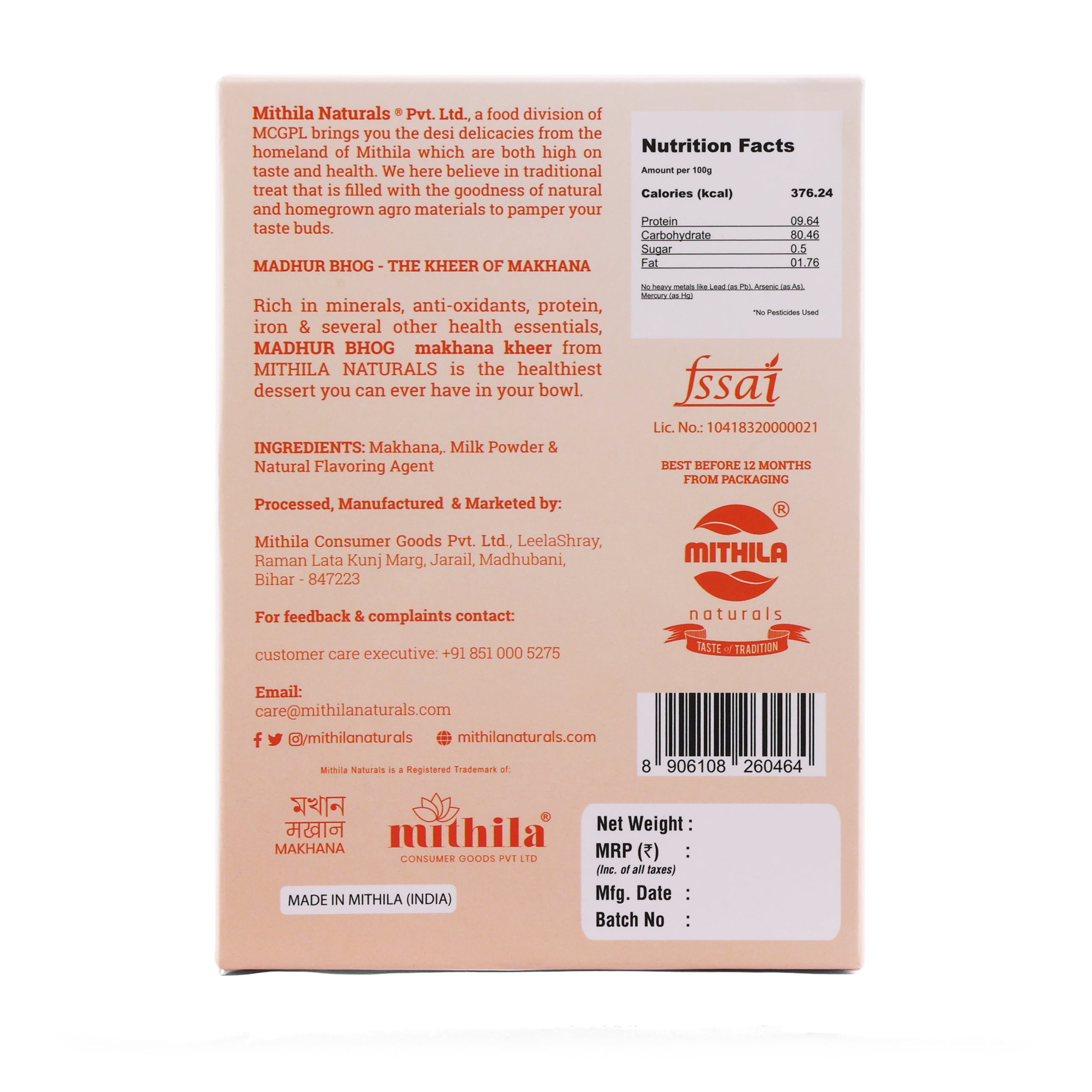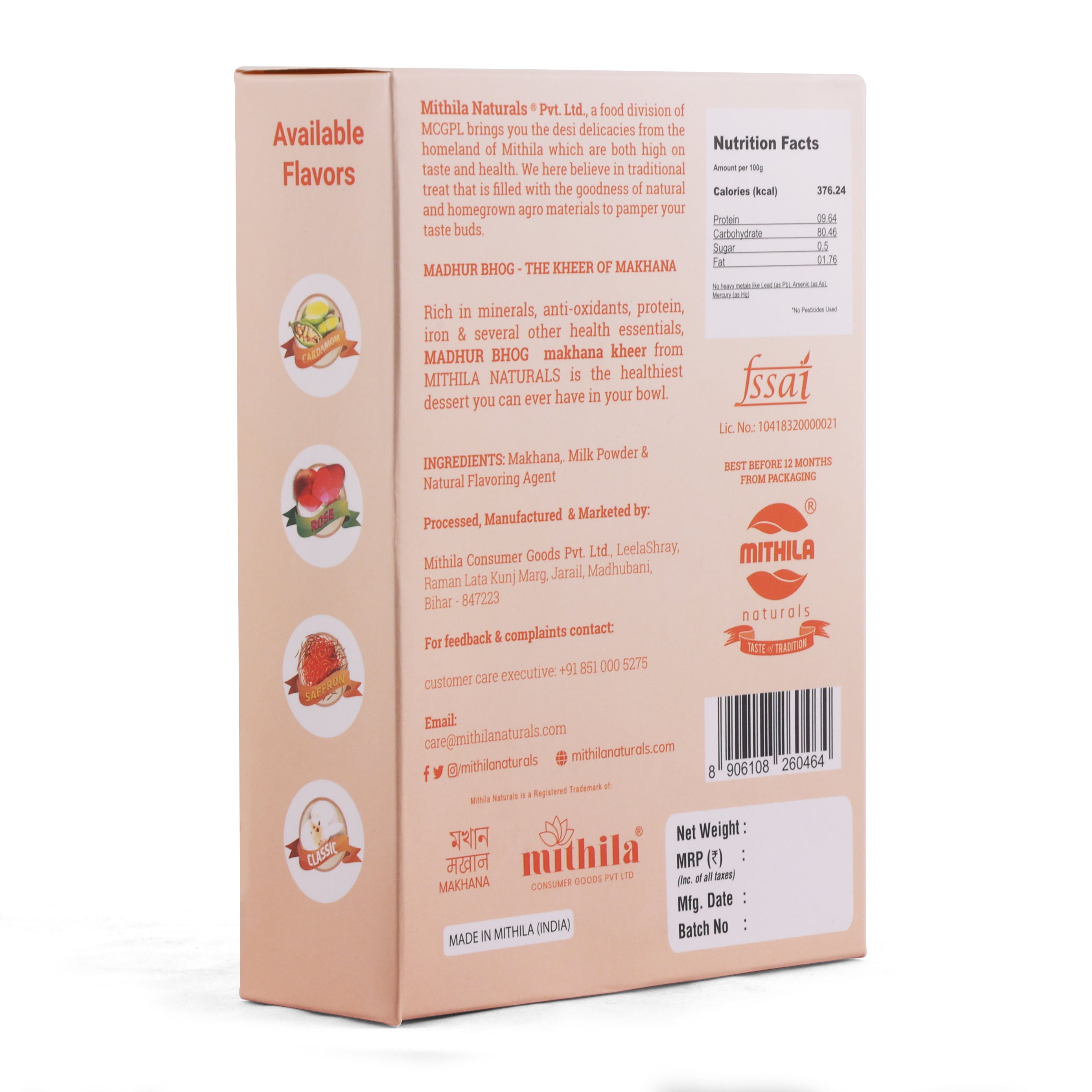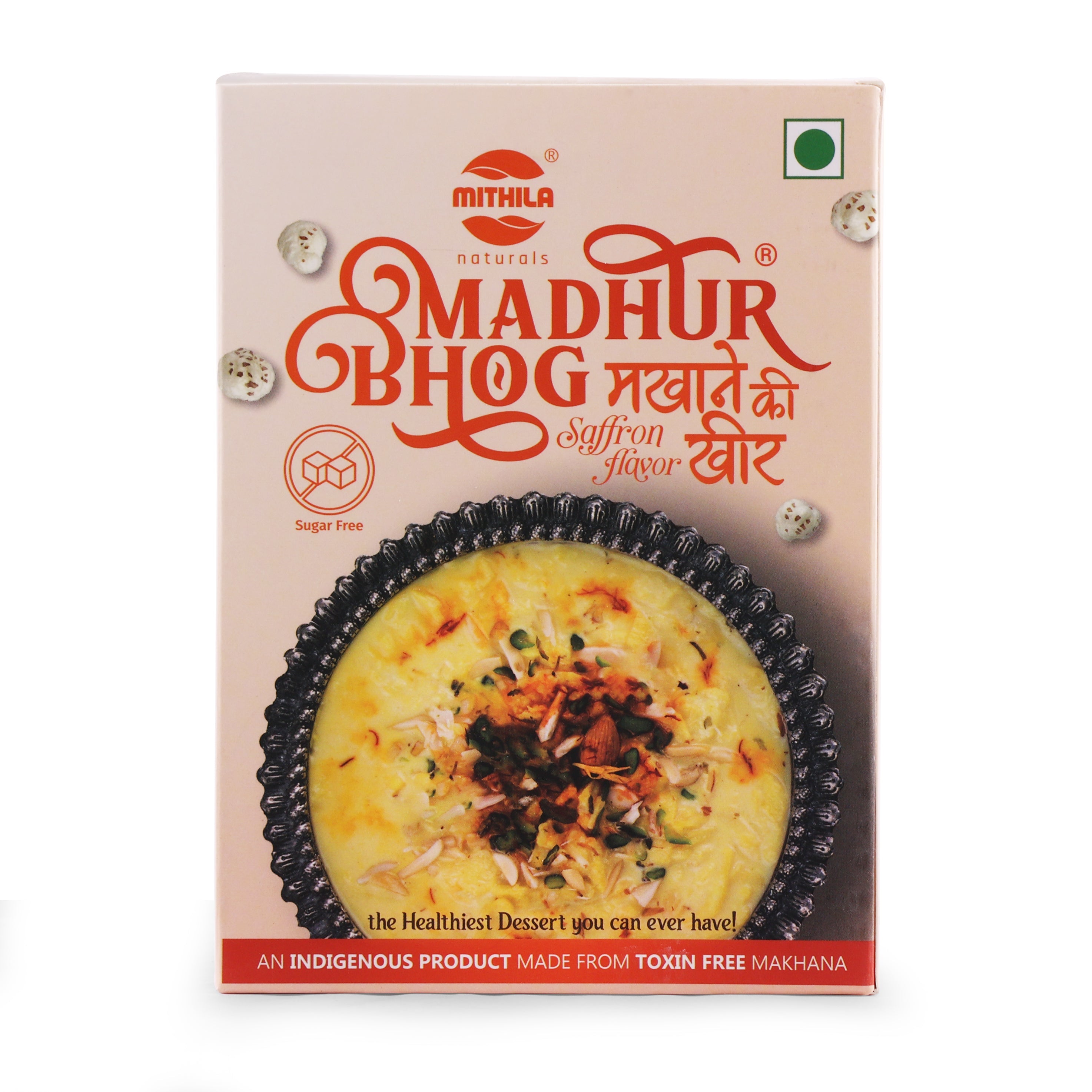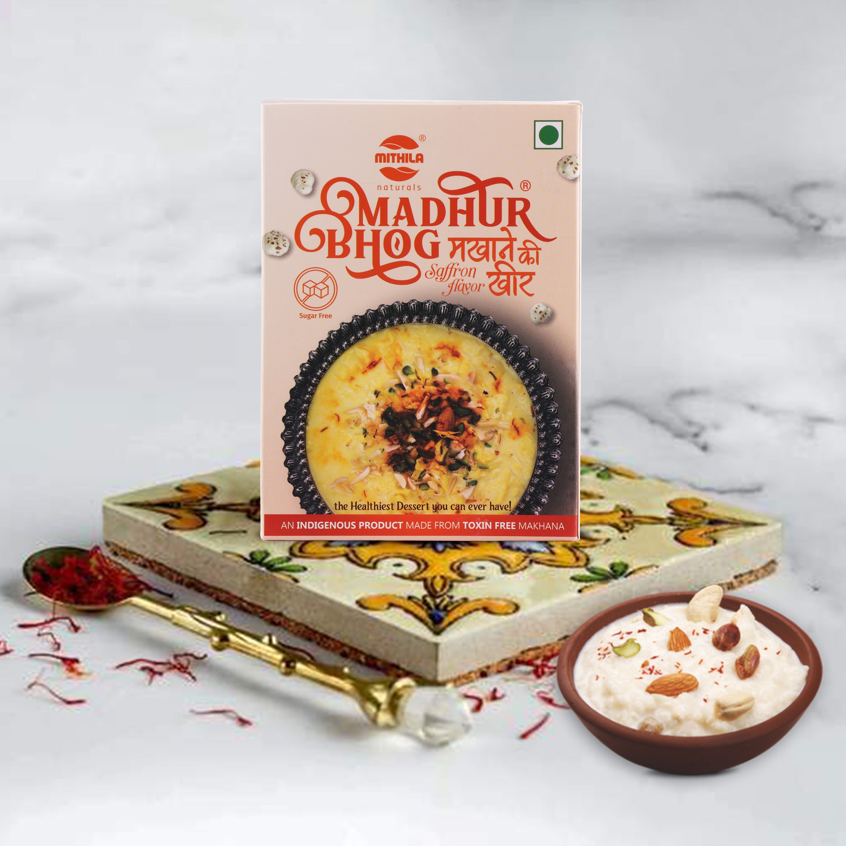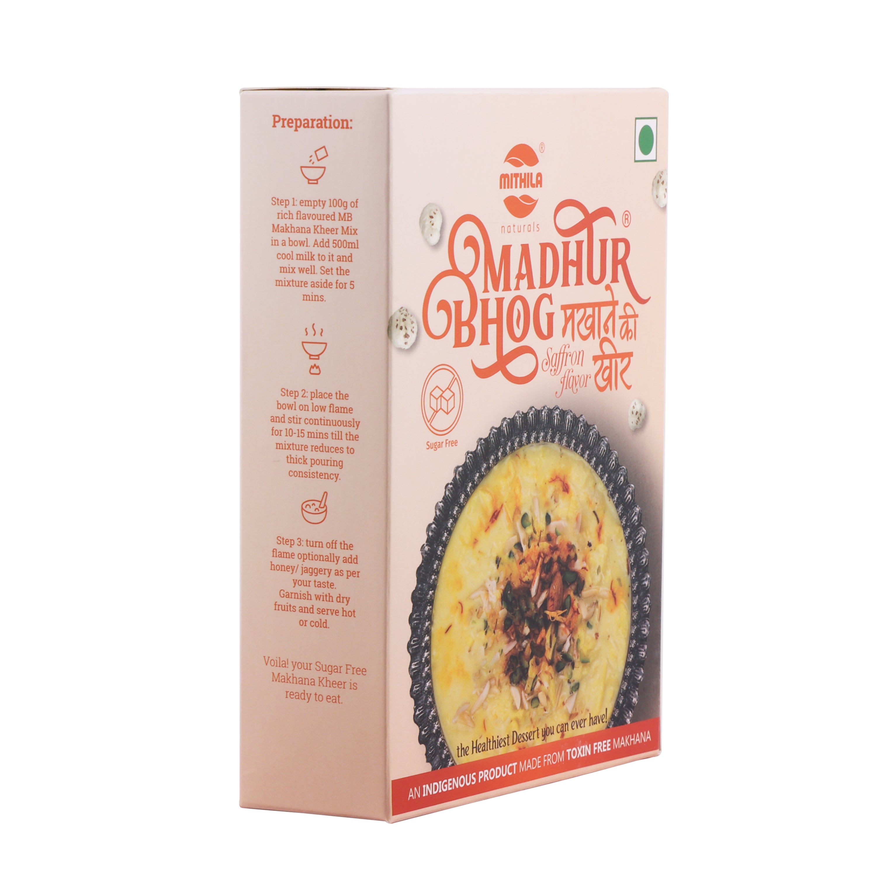 Savor the luxurious taste of saffron in every bite - completely sugar-free! Mithila Naturals’ Madhur Bhog Makhana Kheer - Kesar Flavor combines creamy makhana, saffron strands and milk powder to create a rich, indulgent dessert experience.