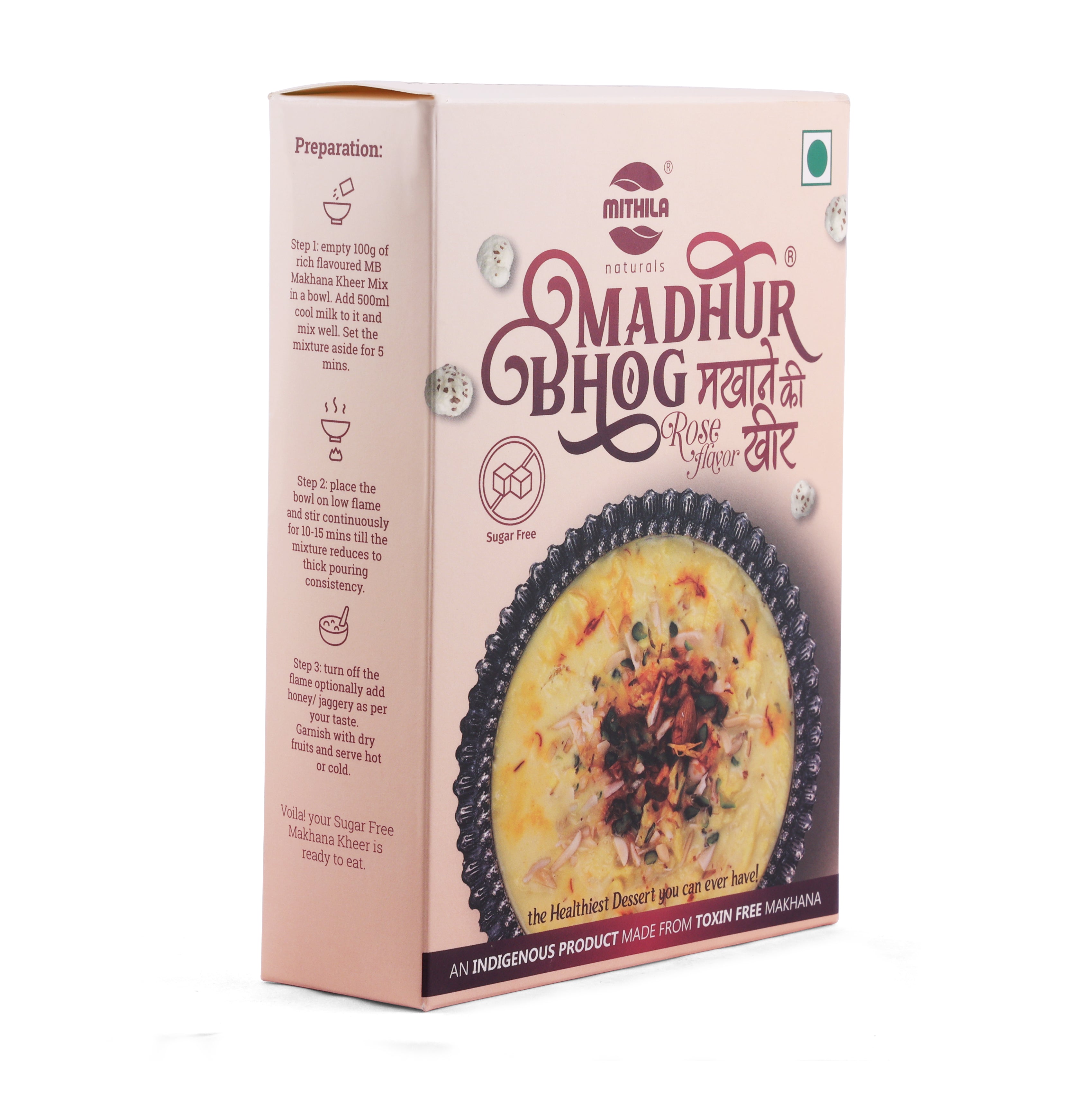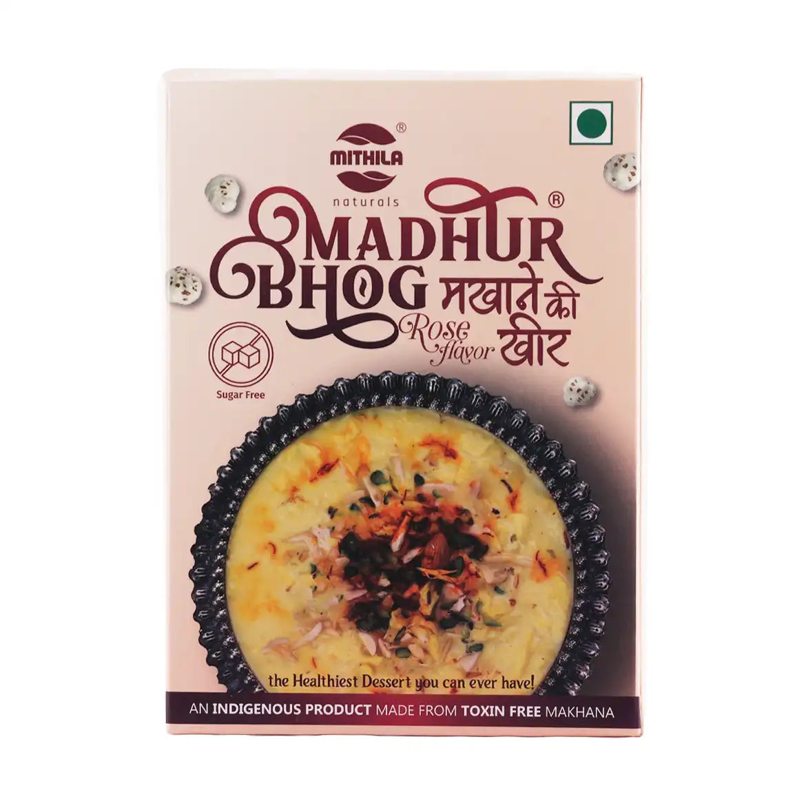 Experience the soothing aroma of rose in a refreshing twist to traditional kheer - now completely sugar-free! Mithila Naturals’ Madhur Bhog Makhana Kheer - Rose Flavor blends pure makhana with milk powder and natural rose essence for a delightful, aromatic treat.