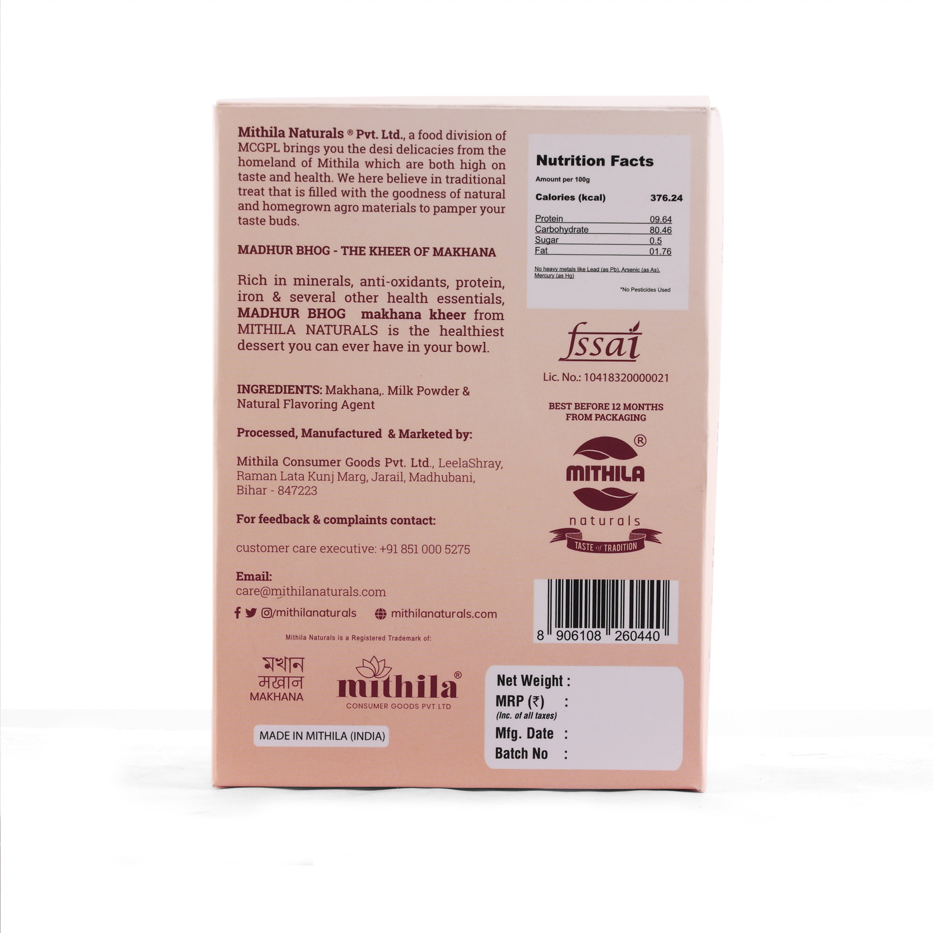 FSSAI Lic. No.: 1041832000021